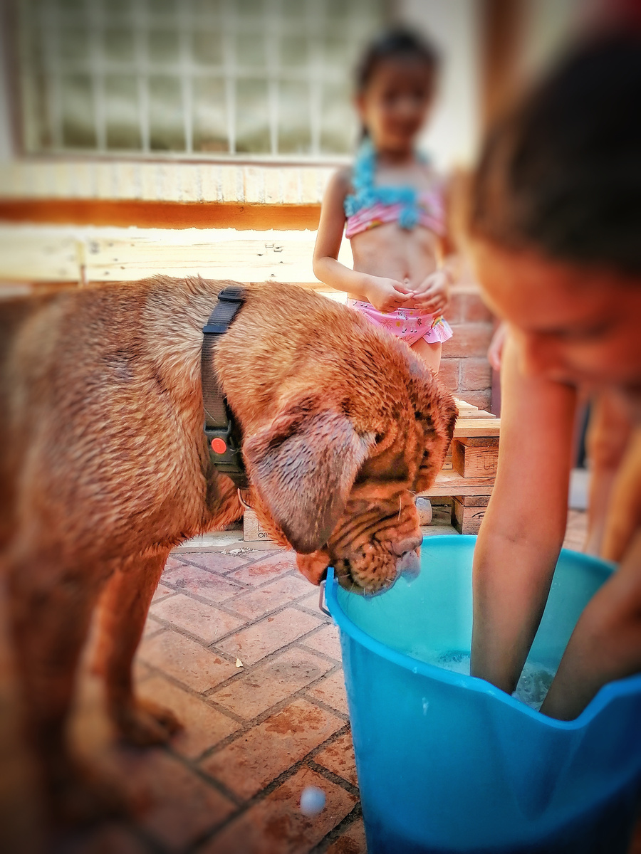 "Amo essere accarezzata, massaggiata, impastata, insaponata, lavata... insomma, mi piace il contatto fisico! Se riuscirai a guardare oltre alla mia mole, troverai in me una grande amica e sarai ricompensat* con i miei amorevoli baci bavosi."